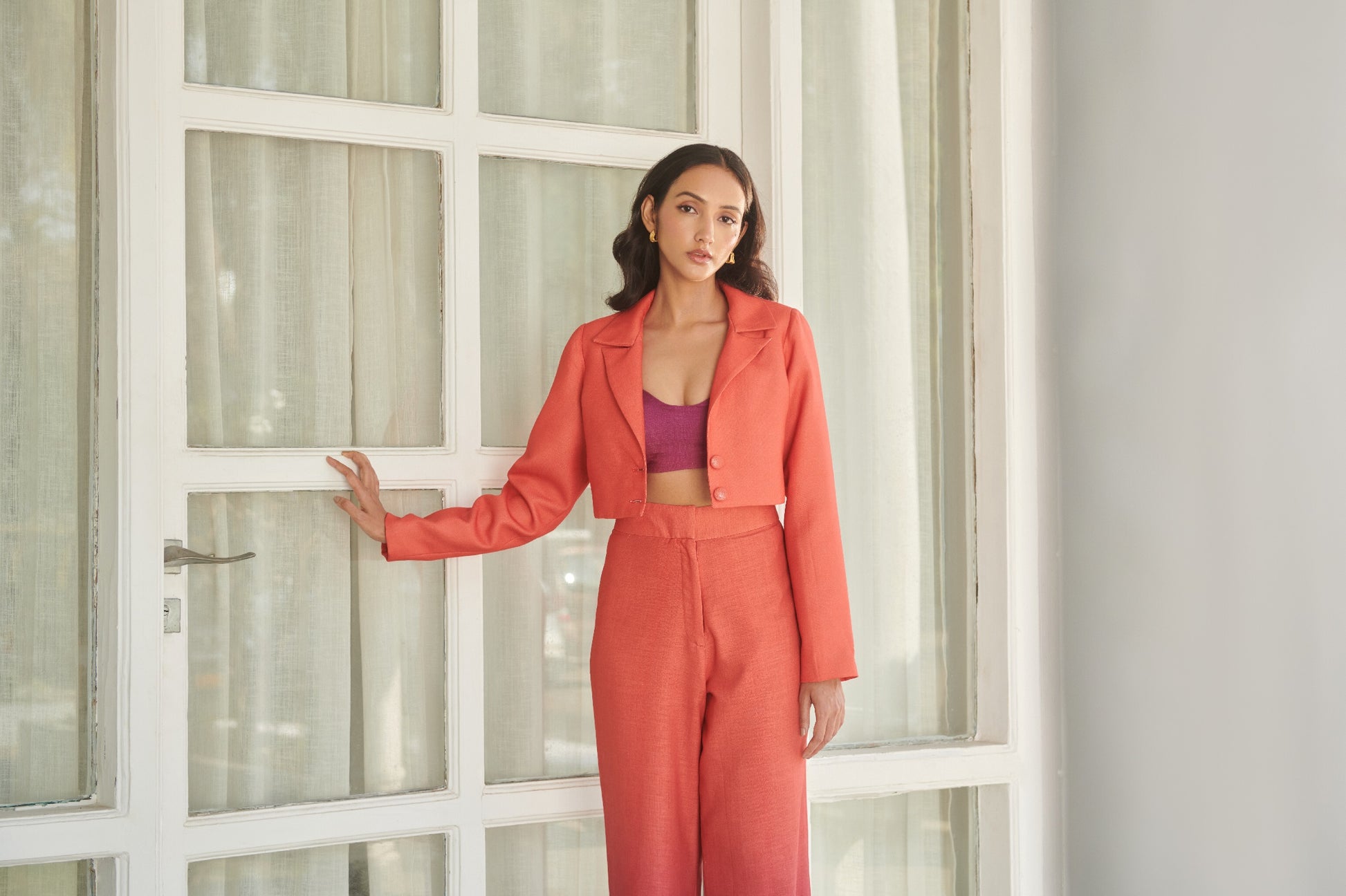 An essential in every way: the Alyssa Blazer features a cropped fit with full sleeves.Pair this with high waisted trousers for a polished look or effortlessly transition to casual by wearing it over a sleek camisole top.