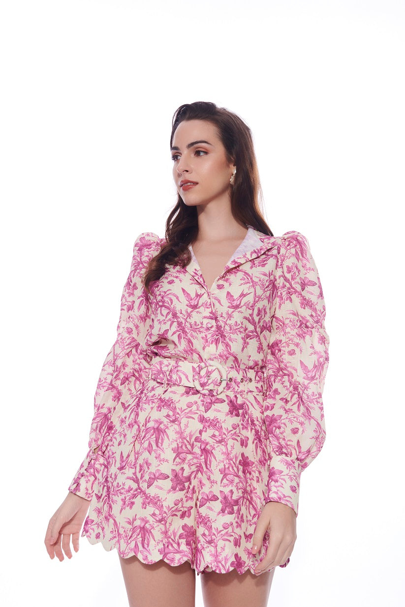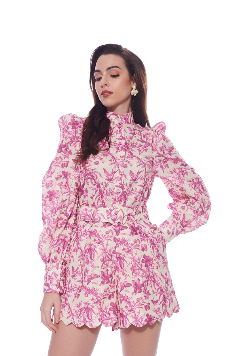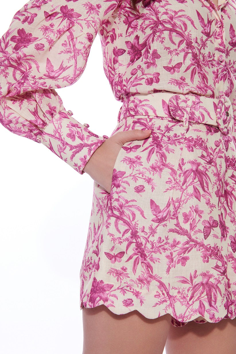 Great for alfresco brunches, our ixia shorts is made from lightweight linen in toile print, a belted waistband and scalloped hem. Wear yours with the matching ixia shirt