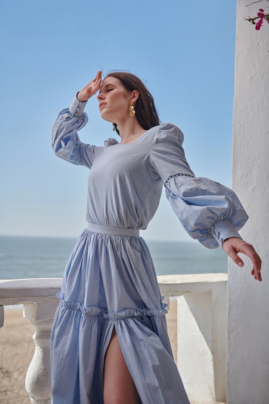 A ‘cannot-go-wrong’ cotton staple made to flare and flow, the Kate Midi Skirt is defined by a high waisted band, front slit and gathered detailing.