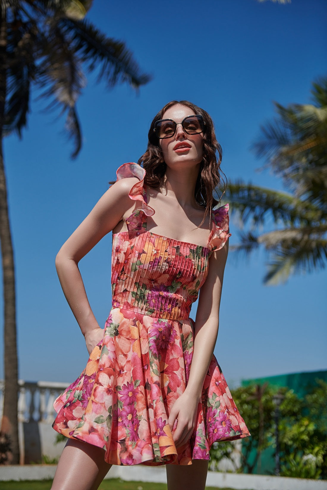 Featuring pintuck detailing across the bodice, side seam pockets and a flared skater skirt, this playful mini dress makes for the perfect flirty wardrobe staple.