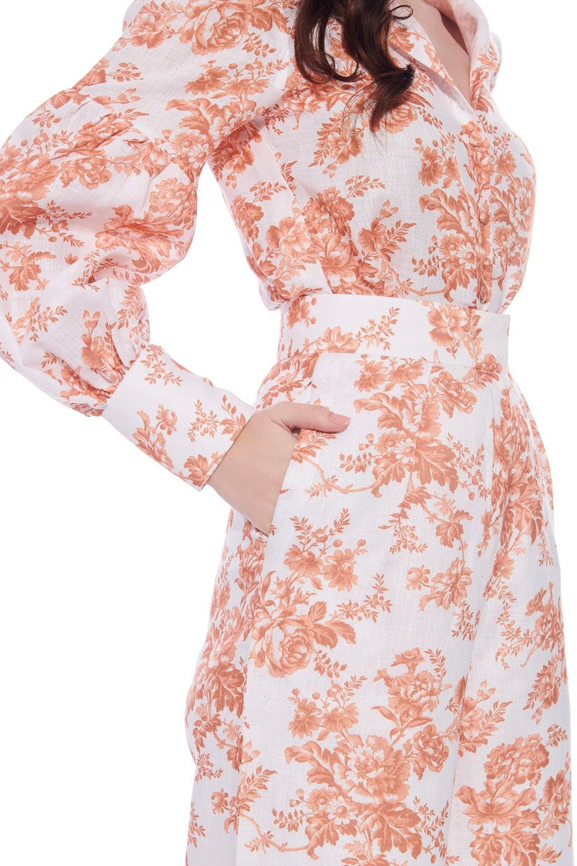 These high waisted trousers feature scallops and pleat detailing. Made in our classic toile print.